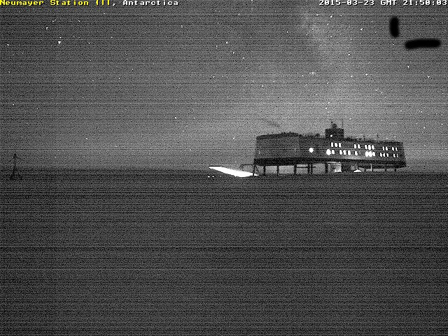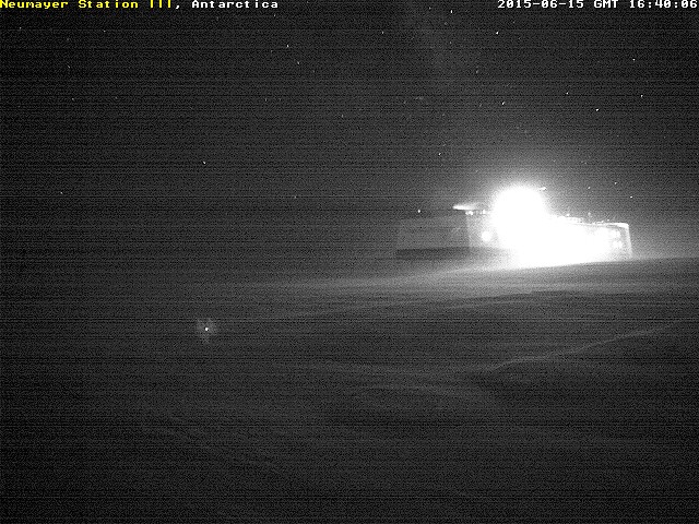 Nova Sgr 2015-2 auf Bildern der Webcam der Neumayer 3Die deutsche Forschungsstation Neumayer 3 in der Antarktis ist ganzjährig bewohnt. Im antarktischen Winter leben dort neun einsame Wissenschaftler, Techniker, Koch und Arzt für den Zeitraum von Ende Februar bis Anfang November völlig abgeschlossen von externen Besuchern. Die Kommunikation mit der Restwelt läuft u.a. über eine Internet-Satelliten-Verbindung. Auf der Website des Alfred-Wegener-Instituts (AWI) wird alle zehn Minuten ein neues Bild der Station aus etwa 200 Metern Entfernung durch eine Webcam dargestellt. Durch die Überwinterung von Petra als Ärztin und Stationsleiterin von Dezember 2014 bis Februar 2016 befindet sich die Website mit den aktuellen Bildern der Webcam in meinen dauernd geöffneten Tabs des Browsers. Am Abend des 23.03.2015 guckte ich noch einmal kurz auf das aktuelle Bild und bemerkte eine helle Sterngruppe, die sehr an den Skorpion erinnerte. Mit Hilfe eines Astro-Sternkarten-Programms und nach Eingabe der Koordinaten der Station konnte nach etwas Drehen der Blickrichtung in Horizontnähe tatsächlich der Skorpion mit dem darin stehenden Planeten Saturn identifiziert werden.